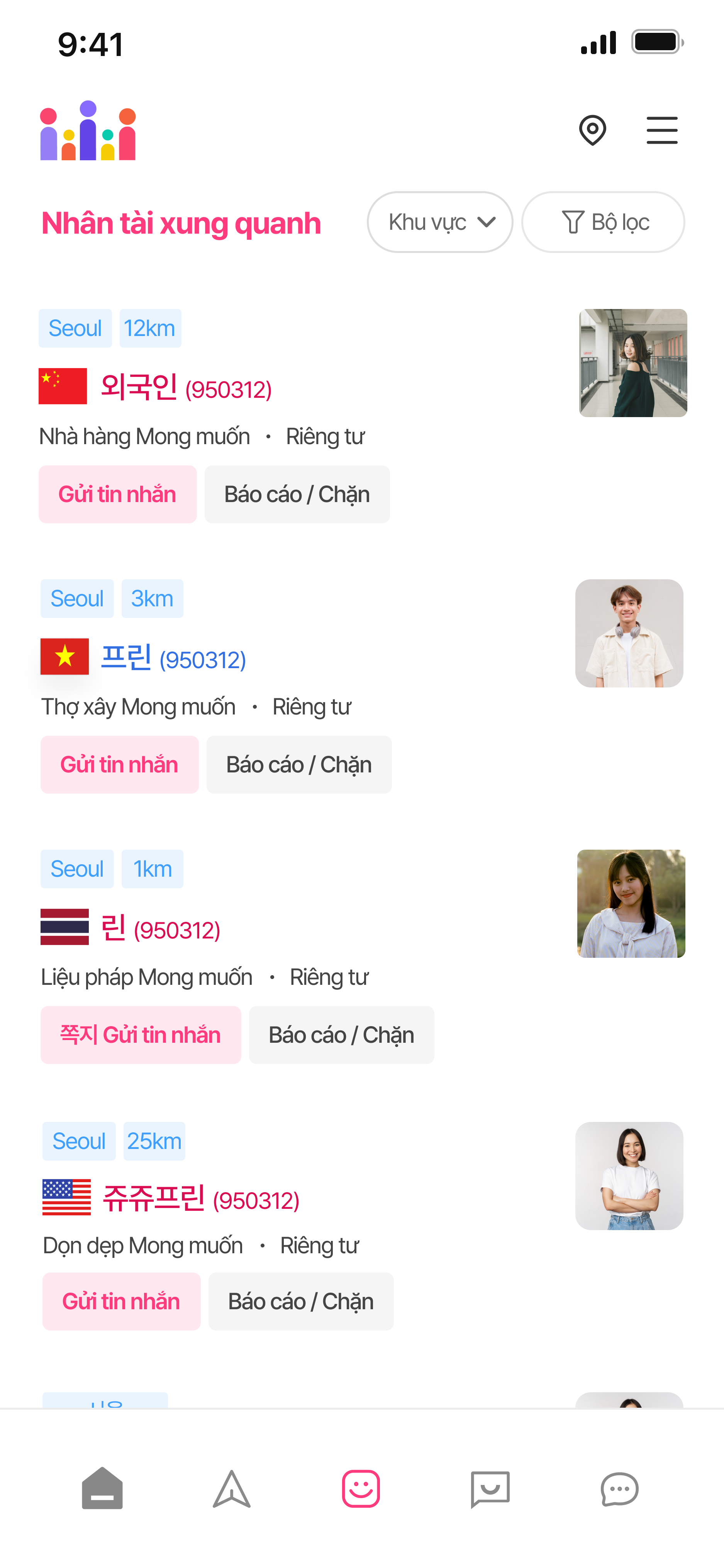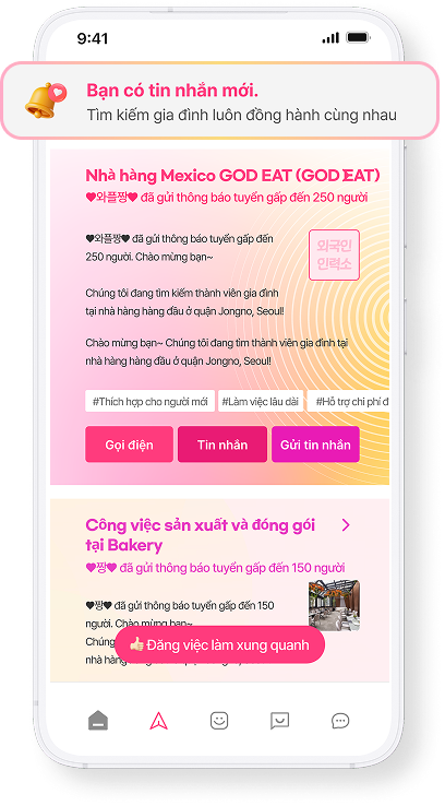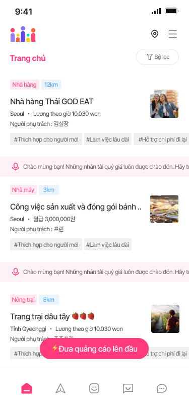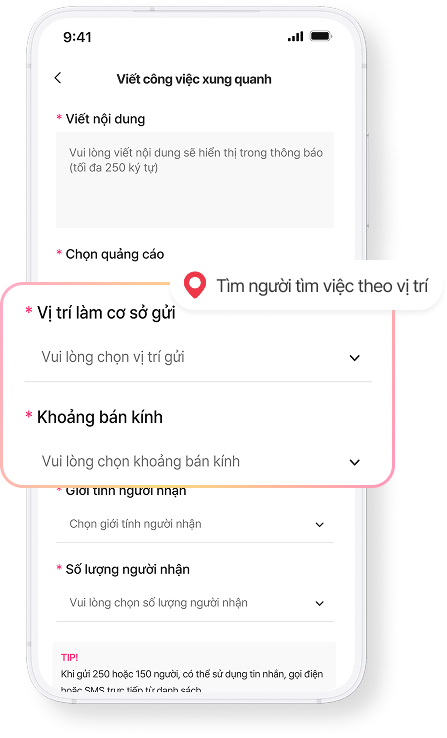 gửi đề xuất làm việc trước cho ứng viên phù hợp gần khu vực.